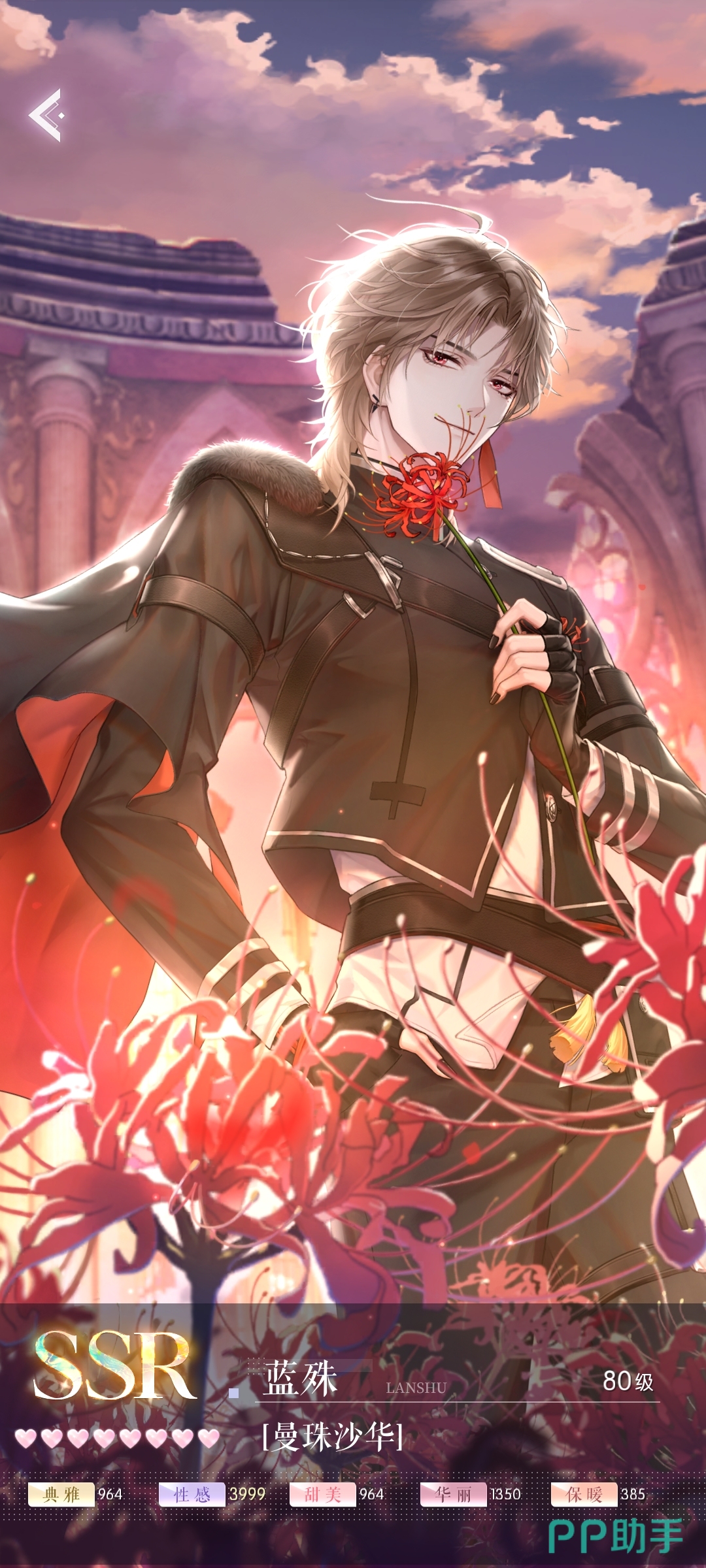 想要知道哪些卡是性感的,我们可以在“羁绊”界面直接搜索“性感”,然后小编要给各位介绍的卡面也可以通过这个方法搜索出来,首先是第一张“曼珠沙华”,这是一张SSR卡,所以它主属性基础评分就会比其他卡面要高,而且副属性华丽也很高,所以一旦获得了这张卡一定要优先培养。
