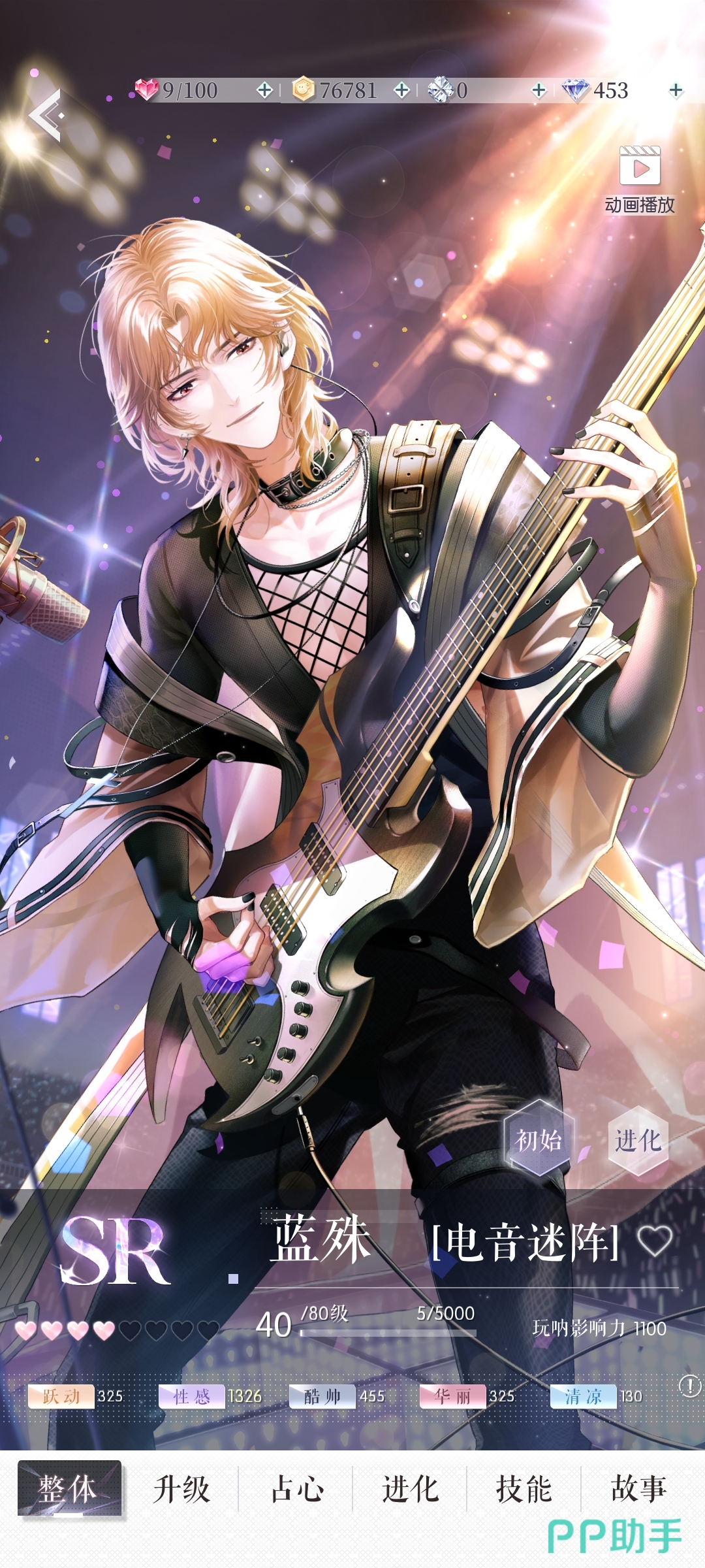 然后是第二张“电音迷阵”,是一张sr卡,也是大部分玩家们都有的一张卡,他的主属性为性感,次属性为酷帅,与此同时跃动和华丽评分也不低,所以它可以说是帮助各位玩家度过新手期的主力军。
