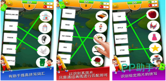 学习英文是相对比较枯燥,这里将大家常见的单词、字母融入到了游戏当中,通过简单的触击就可以就在欢乐的氛围当中学习到单词和语法,还没有更好学习方法的朋友可以来这款游戏里面体验下,同时游戏中还有针对不同英文功底的难度模式,不论是刚刚起步,还是已经有了一定储备的玩家都能找到适合自己的类型!