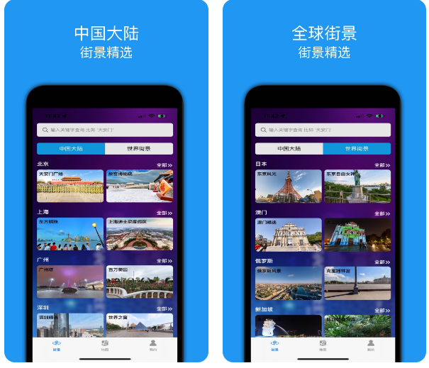 这个 APP的主要功能是全景图,在这个 APP上,你可以看到中国大陆,甚至是国外的一些著名城市,在这个 APP上,你可以清晰的看到目的地的一些著名的标志性建筑、道路、学校,所以这个 APP对你来说是一个很好的体验,你可以尽情的尝试。