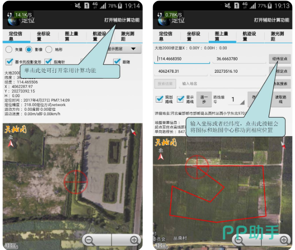 这款应用,可以通过准确的坐标,观察到附近的地形、建筑等,还可以实时编辑,将自己的经纬度、海拔、海拔等信息,与朋友们共享,这样,你就可以不需要离开自己的家,只需要在手机上,就可以畅游全国。并且,还可以通过圈套来选取一块区域,进行面积的扩大,便于使用者对特定的区域进行认识。