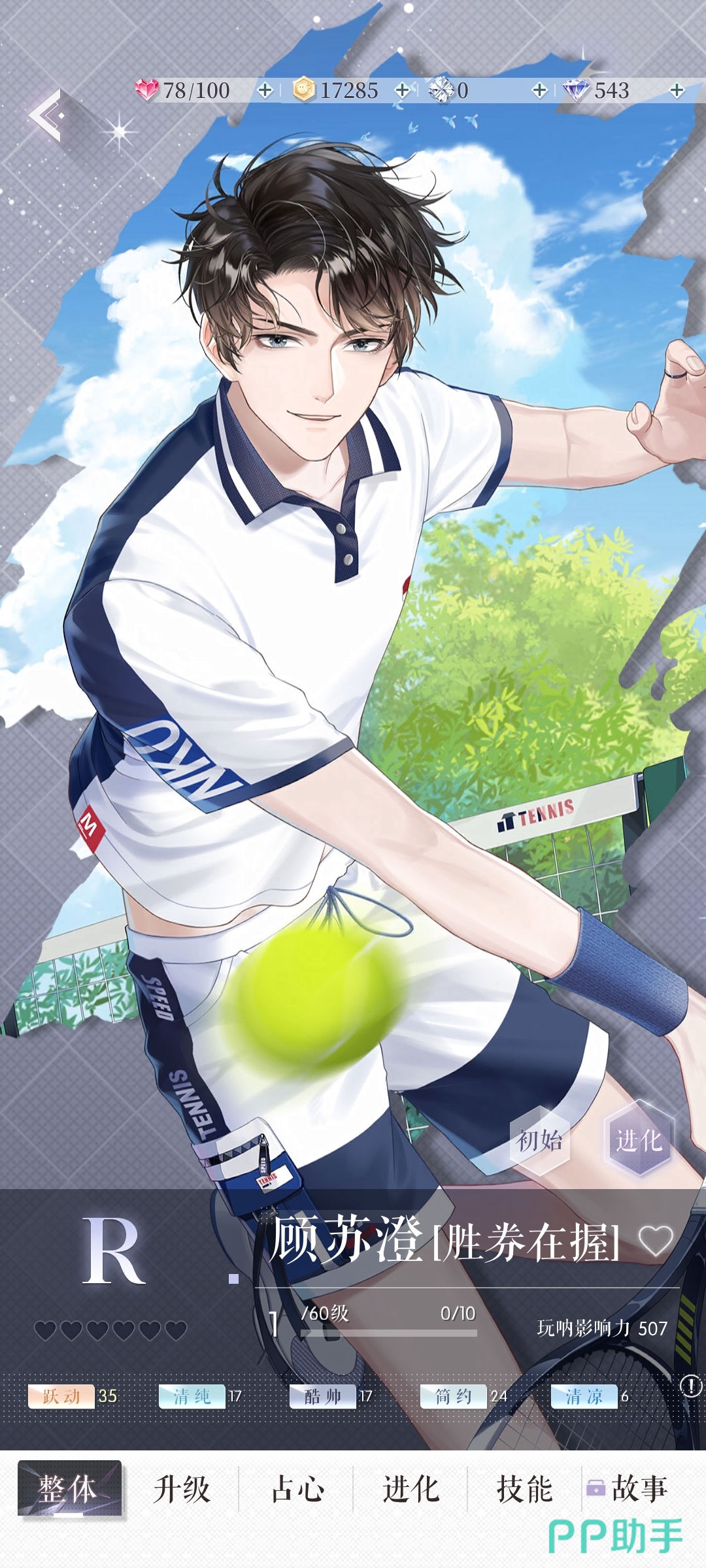 第三张和第四张都是r,但是虽然是r卡,在我们进行游戏的时候,它们也是可以帮上大忙的,先说“胜券在握”,它是r卡里少有的跃动和简约评分较高的,可以帮助我们通关大部分的前期关卡,然后再说“与你起舞”,这个是任何玩家一进游戏都会拥有了,玩家们真正意义上的第一张卡,而游戏内抽卡需要的招募券比较难获得,所以可以说一开始大家只有这张卡,所以需要培养起来好通关拿跟多的券进行招募。