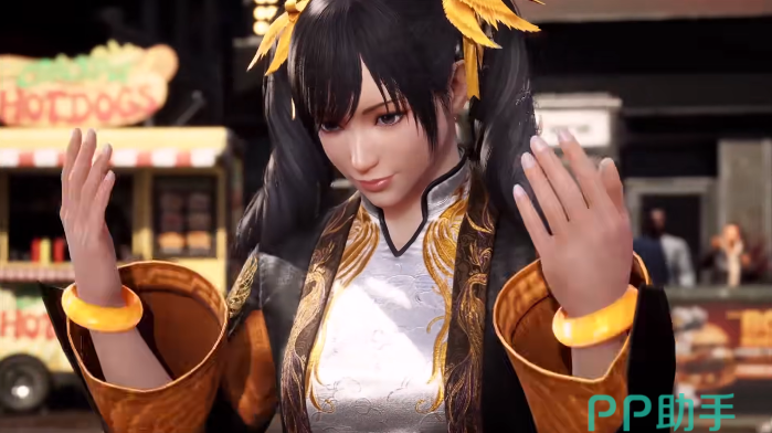 服装层面上这一代的默认外观变更为了穿着中国风设计的黑色外套,上面有许多国风花纹,而发型上依旧延续的标志性的双马尾造型,新的人物外表也让角色颜值提升到了一个新的高度,可以看出在本作中凌晓雨可能依旧会延续她18岁的学生人设,至于这个角色为何不曾老去,也没必要纠结了,毕竟FTG中游戏人物也是卖点之一嘛,怎么可能就这么轻易老去。