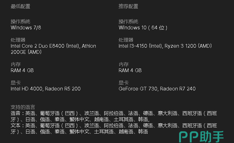 推荐配置上需要windows10和4代i3以及GT730显卡,其余没有变,也是很落后的设备要求,甚至说连同时代3A作品的低配都比这个高,所以你完全不需要担心带不动,考虑到国内上线虽然在年内,但却不知道是哪24小时,所以留个35GB固态空间应该是最稳的,哪怕是年末上的话也够用了。