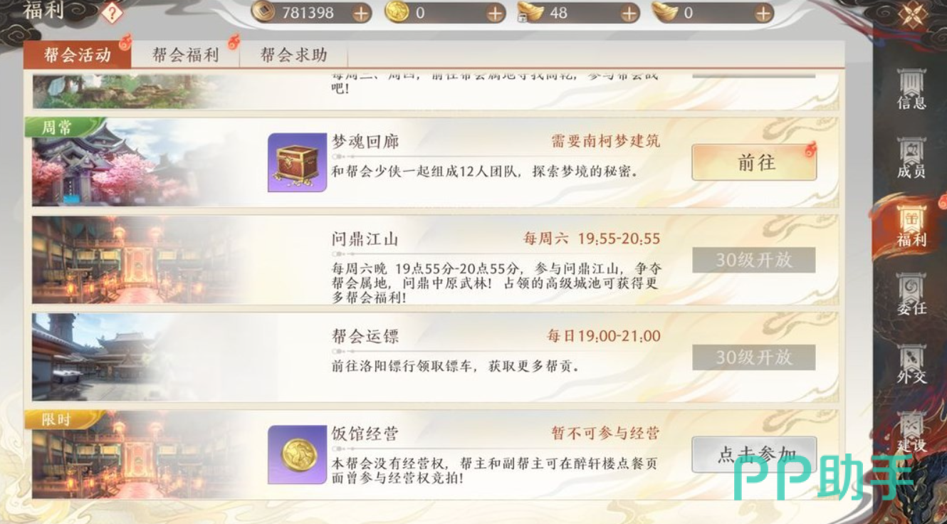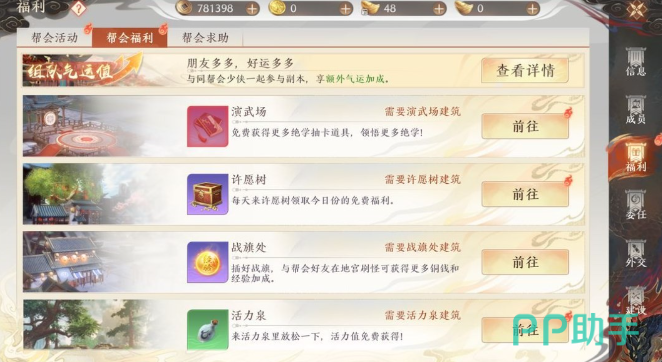 特别是新手玩家,各方面材料不充足,实力无法提升,加入帮派能够给玩家额外获得更多的道具材料,这对新手玩家开荒以及提升实力来说都是非常大的帮助。