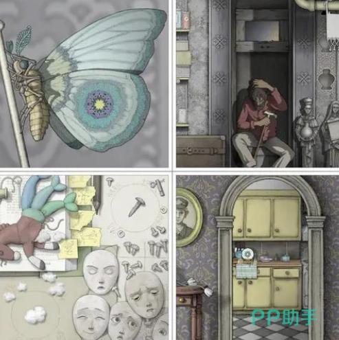 里面的场景不同,可以拆分画面,不断拼接,把人物进行配合,可获得更多场景,玩家要找线索,按照场景的东西来打开机关,上面的图片也可缩小或者放大,并且可移动图中的东西,放在相应的位置,把故事继续进行。