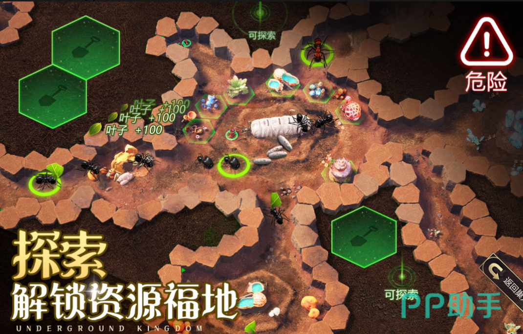 在本作中玩家将会成为蚂蚁王国中的国王,你需要带领蚂蚁军队在昆虫的世界里存活。玩家刚进入游戏就要建造一个巨大的蚁穴,你可以在蚁穴中生产足够多的蚂蚁士兵,然后带领蚂蚁军队出门猎杀周围的昆虫,一些螳螂和独角仙都会成为蚂蚁军队的目标,甚至还可以捕捉蝴蝶这种会飞的虫子,这些食物可以用来喂养蚂蚁的幼虫。