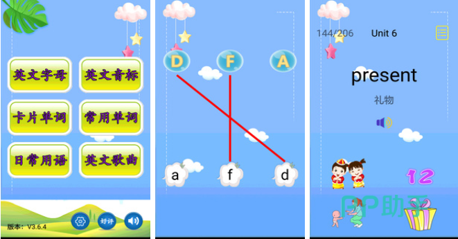孩子小时候正式接纳知识的好时候,这个时候大脑比较活跃,学知识学的也比较快,现在在游戏中就可以通过各种趣味小游戏,让孩子能掌握英语单词的读法和写法,也会在游戏中拓展一些日常的用语,让孩子在游戏中就能轻松的学会这些知识,除了基础的知识以外,还有英语歌曲能够激发起玩家的兴趣。
