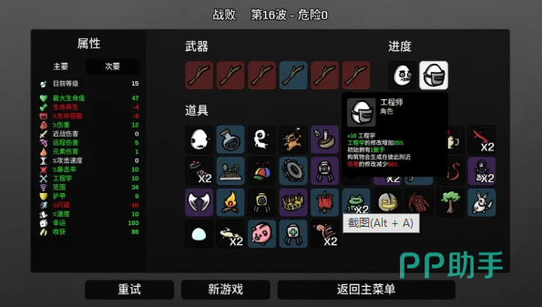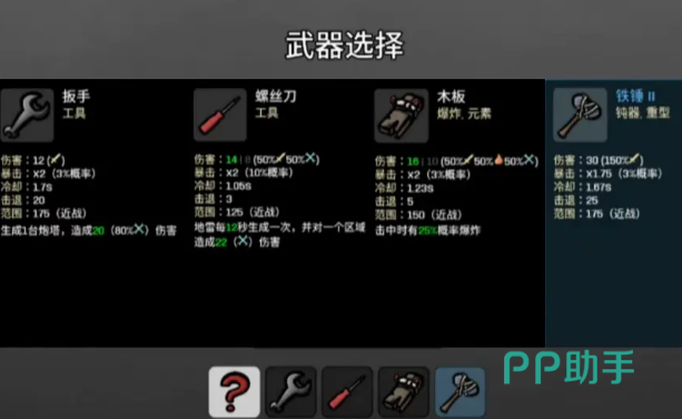在土豆兄弟中,除了可以选择不同的角色以及不同的武器外,还有另外一个项目也需要认真的选择,这就是消耗品,正确的使用消耗品可以帮助你更好的通过游戏中的关卡,常用的消耗品就是血包和各种增加状态的道具,除此之外,就是构筑物了,大家可以简单的将构筑物理解为炮台,事实上,构筑物就是各种不同效果的炮台。