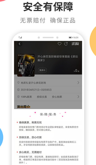 如今各大app的出现,方便了人们的生活,购买演唱会门票也可以直接在手机上操作,这一款app是买票抢票神器,其中拥有专业的交易平台。平时购买演唱会门票特别昂贵,大部分平民都在为票价昂贵而发愁,来到这个app当中可以解决各种烦恼,价格非常亲民,优惠价格非常高,价格低到无法想象,有很多话剧,钢琴剧或者音乐剧,仅需要几十块钱就可以轻松观看。