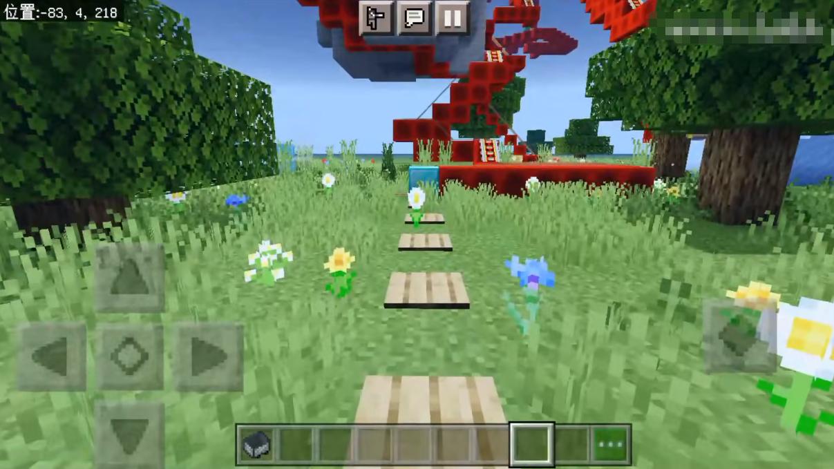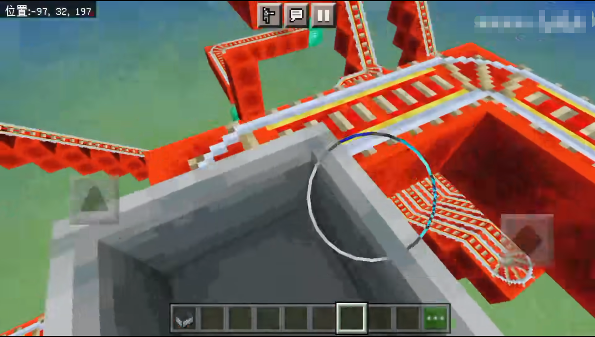 第二步,在MC游戏世界中规划好需要的地盘,然后在需要拐弯的地方提前定好点,比如可以放一些木板作为提示。把整体的形状打好。