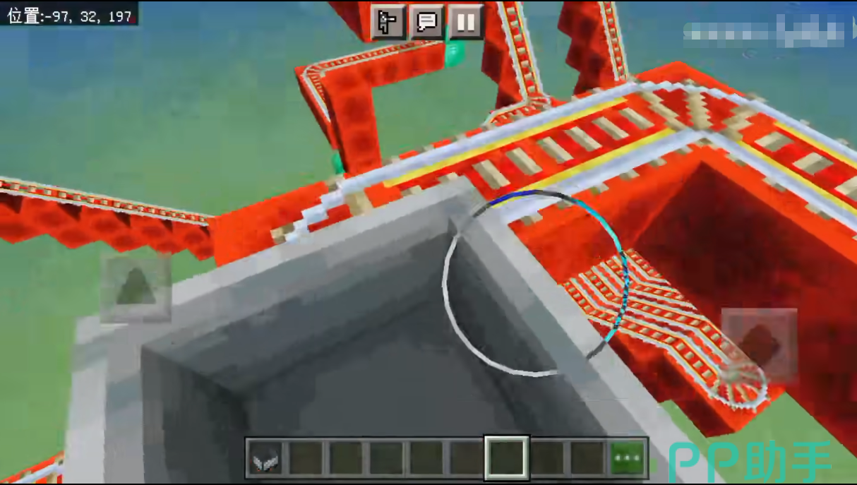 第三步,正式开始建造,提前摆放好猪人塔,有了它就可以让车一直运行,然后开始按照高低设置开始铺设道路,一般推荐使用铁轨以及动力铁轨,实现自动化运行。如果遇到了需要拐弯的地方,就可以使用普通的,直线就用动力的。在这些轨道下面需要铺设红石火把提供动力。
