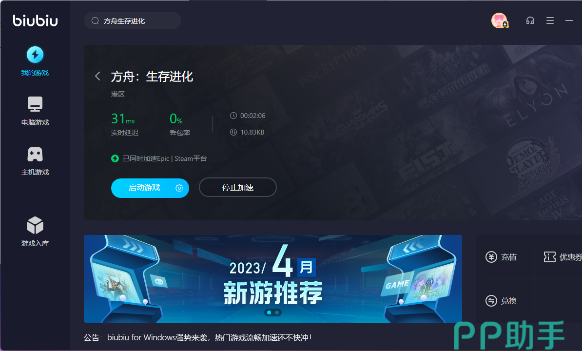 方舟生存进化是一款第三人称的在线沙盒玩法游戏,玩家可以在这里体验史前文明的恢弘,今天小编主要是和大家介绍方舟生存进化闪退怎么解决方法,因为在实际的游戏体验中,有很多的朋友会出现相关的掉线以及卡帧情况,经常会突然的闪退,非常的影响自己对游戏的体验,情绪也会由此变得很烦躁,为了能解决这个难题,建议大家可以优先去考虑使用biubiu加速器,因为该工具的加速效果稳定,并且游戏的种类多,不用担心有使用不了的情况发生。