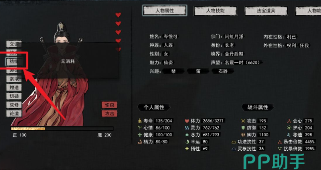在成功之后就会有子嗣出生,玩家可以通关人物属性的关系途中查到她的子女是谁,玩家也算是大功告成了。其实还是比较有趣的一个系统,其实夫妻一起修炼加的属性还挺多。这个玩法的灵感应该是来自《神雕侠侣》这部作品,古墓派功法《玉女心经》的“玉女素心剑”练到最后一层需要男女双人相互帮助下练功,如今这种设计出现在《鬼谷八荒》中,可以看出武侠和仙侠其实很多地方都是相通的。