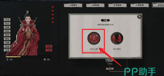 首先玩家需要找一个亲密度比较高的女性,如果你不会看亲密值直接点对方小头像看有几个爱心就行,满爱心的话你可以看到会有一个结缘按钮,直接点击会弹出对话框,直接选结为夫妻就行了,道侣虽然也行但无法算作自己的家庭成员,成为你的妻子之后就能怀孕生小孩。