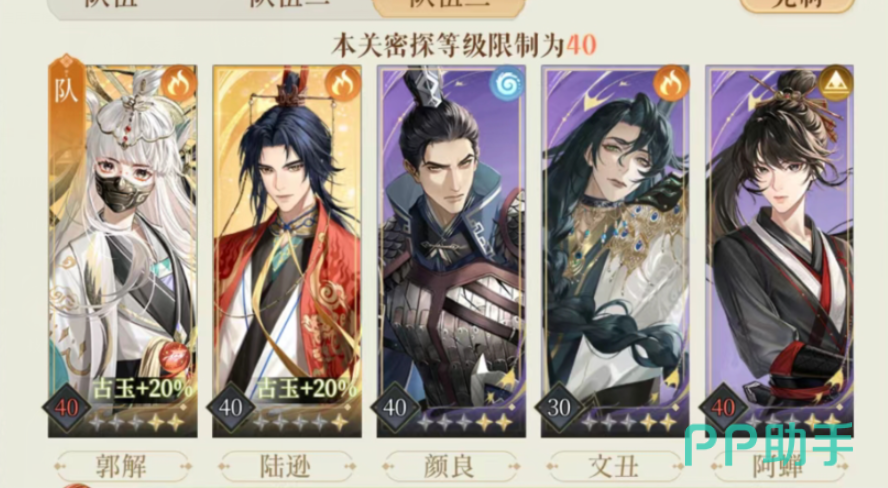 当陆逊作为队长时,则会触发队长技能【问书】,每回合开始时,将会依次为我方的全体角色附加攻击力提升的效果,同时我方角色受到的伤害都会降低,此效果会持续两个回合。我方角色恢复20%攻击力的生命值。当陆逊达到2星时,可解锁天赋烈火为盾;达到4星时,解锁天赋灭谛;觉醒后解锁天赋停云。