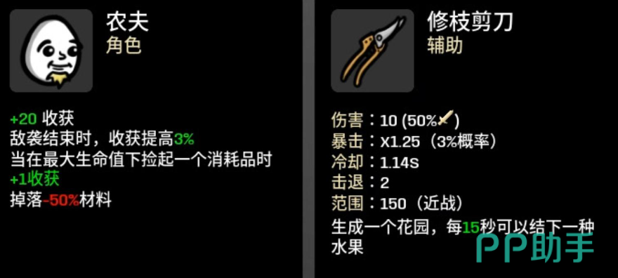 土豆兄弟农夫它的词条和别的词条有非常大的区别,所以就有相当多的玩家不太喜欢农夫这个角色,但是今天通过对土豆兄弟农夫怎么玩进行讲解之后,会有超级多的人喜欢上这个角色,首先会对它的功能进行介绍,然后就道具和属性方面提供建议,让大家能够非常顺手的操作这个角色。