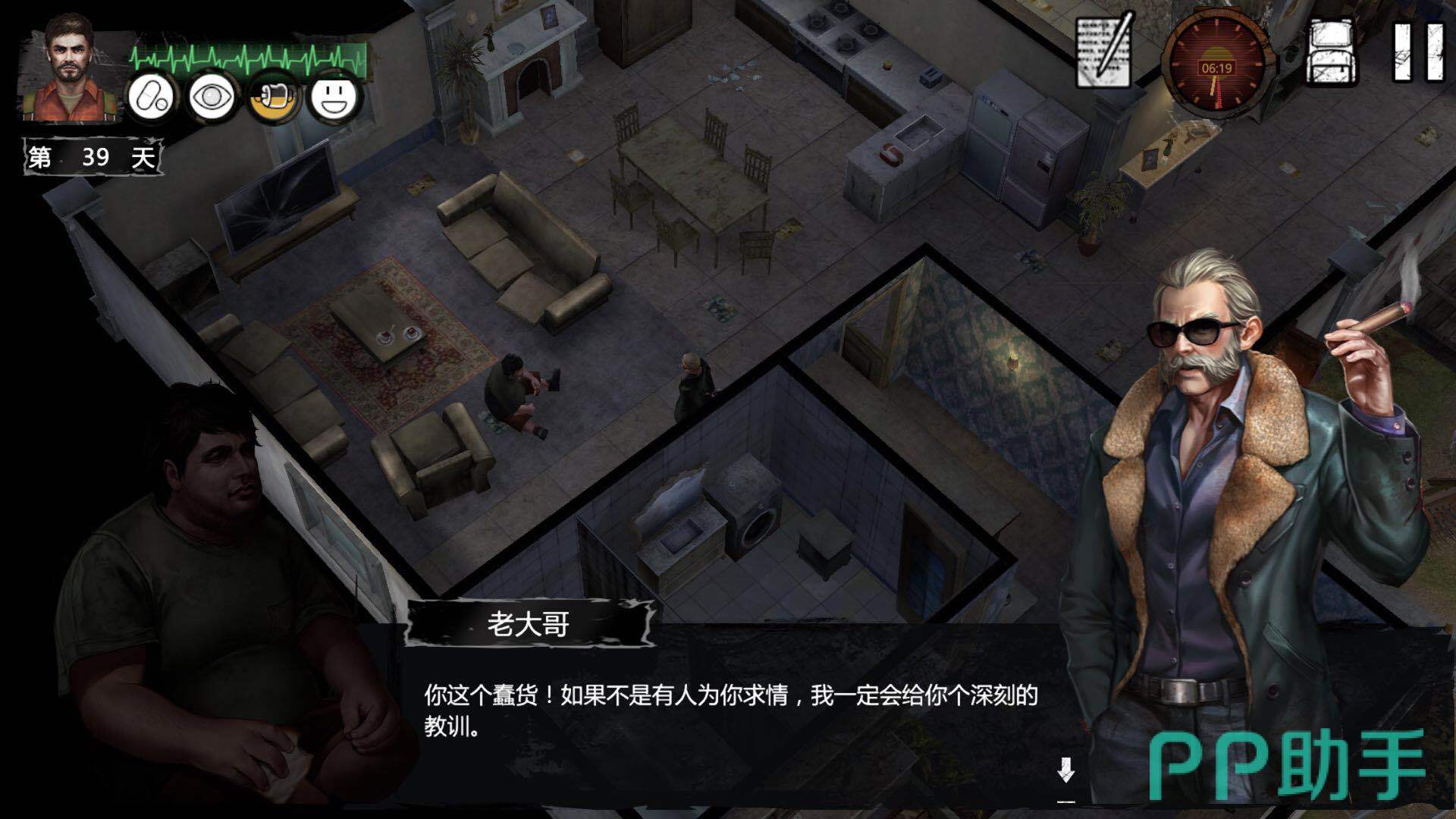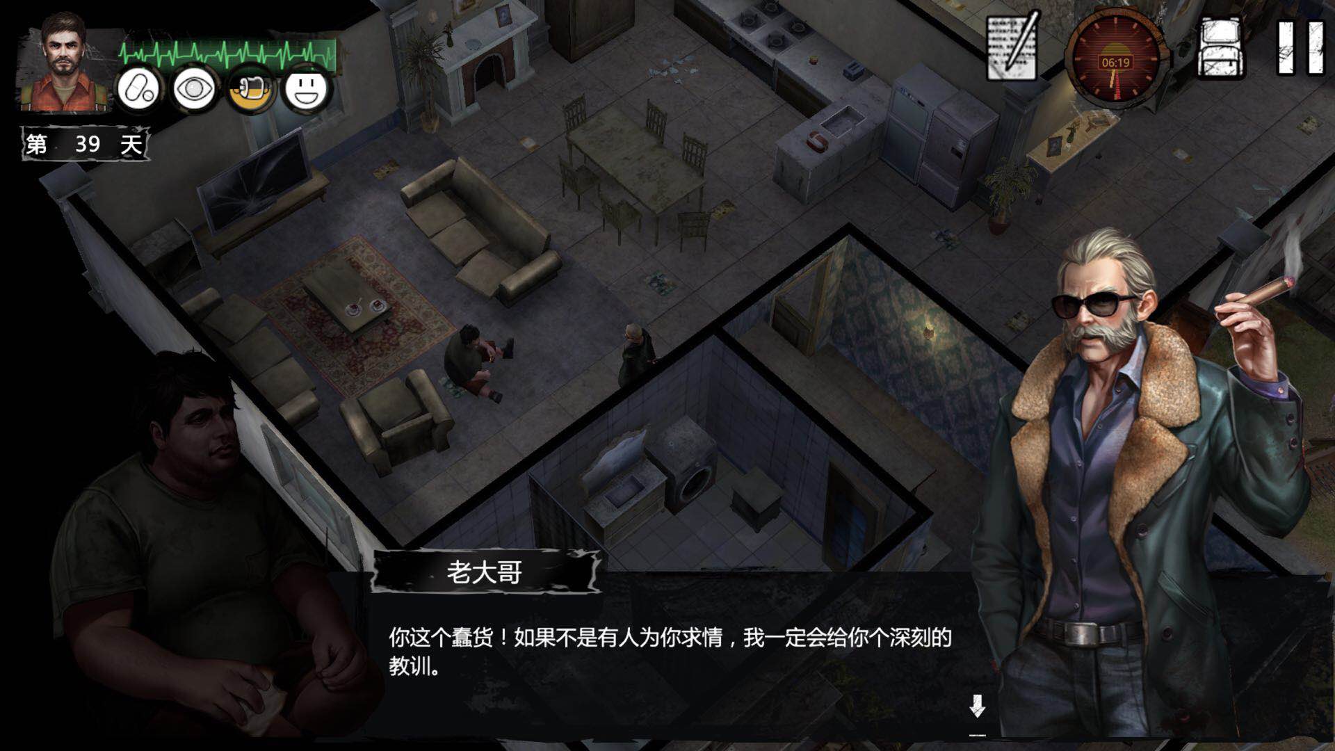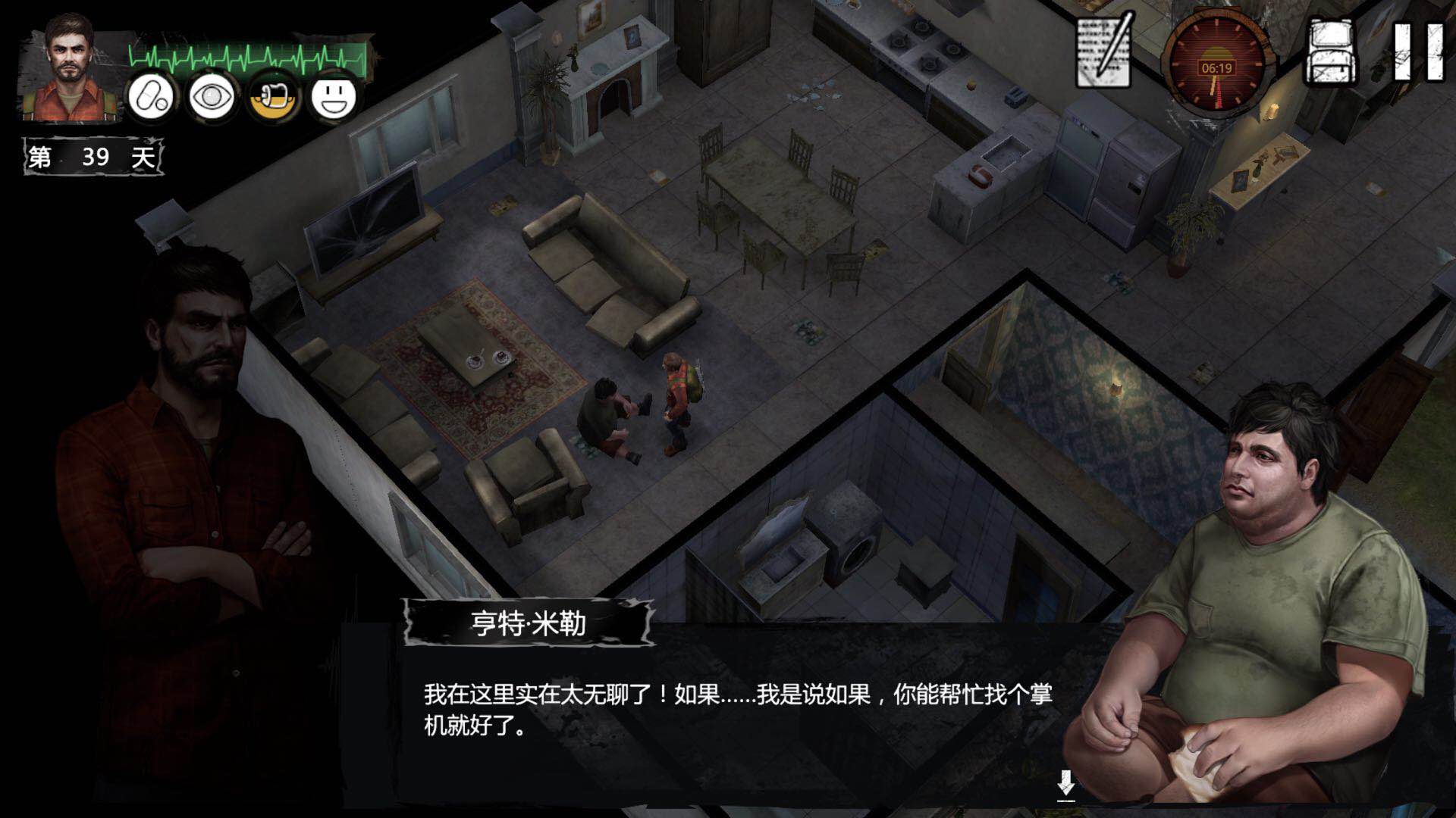 第二步:米勒所在的位置是居住房,走进去之后可以看到马大哥和米勒在说话,马大哥叫米勒5日之后搬去北城,这里其实就是暗示玩家5天之后再来米勒住的地方看一下他是否还在这里。