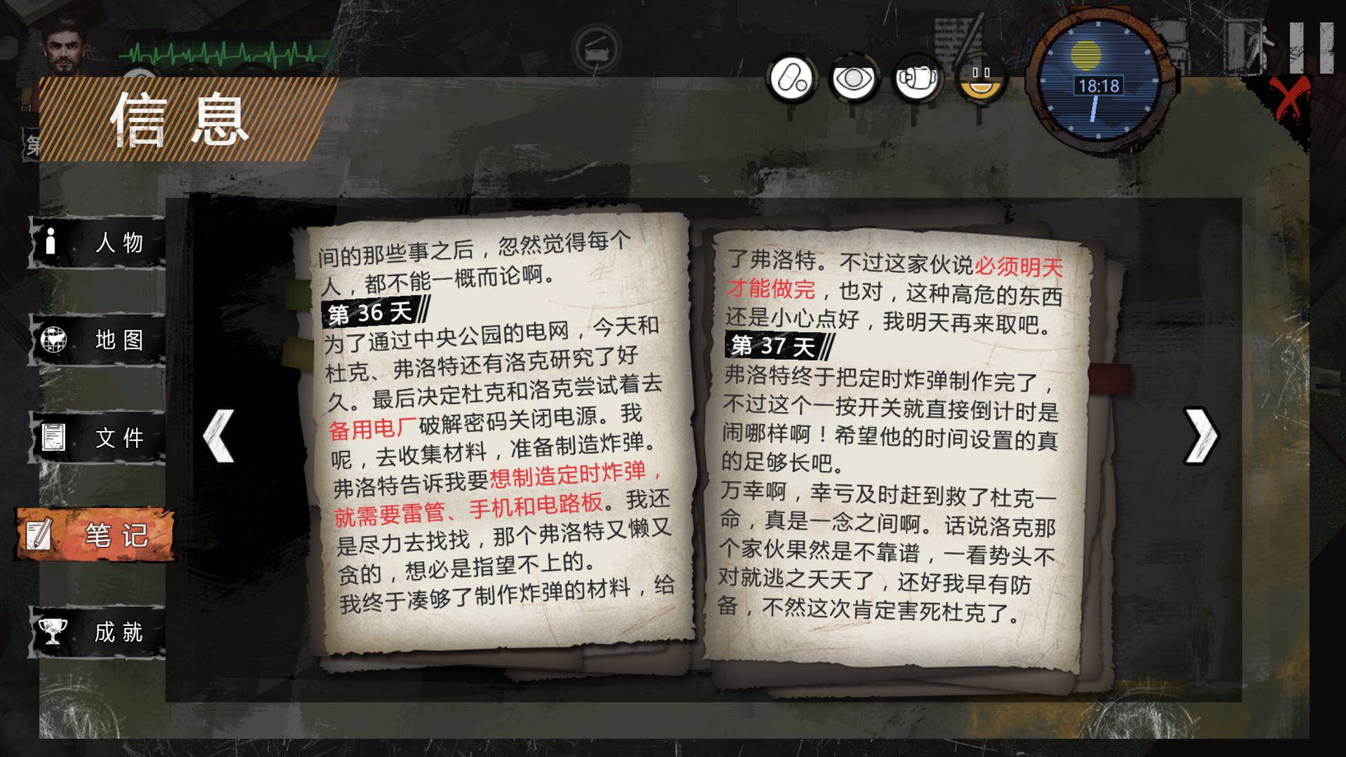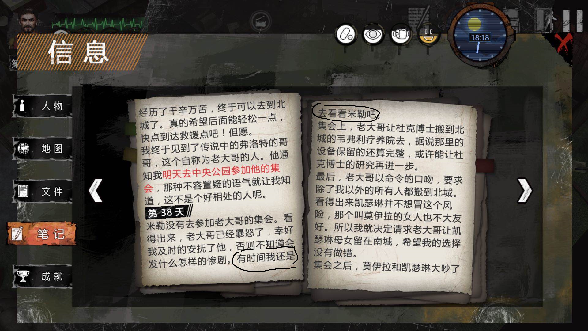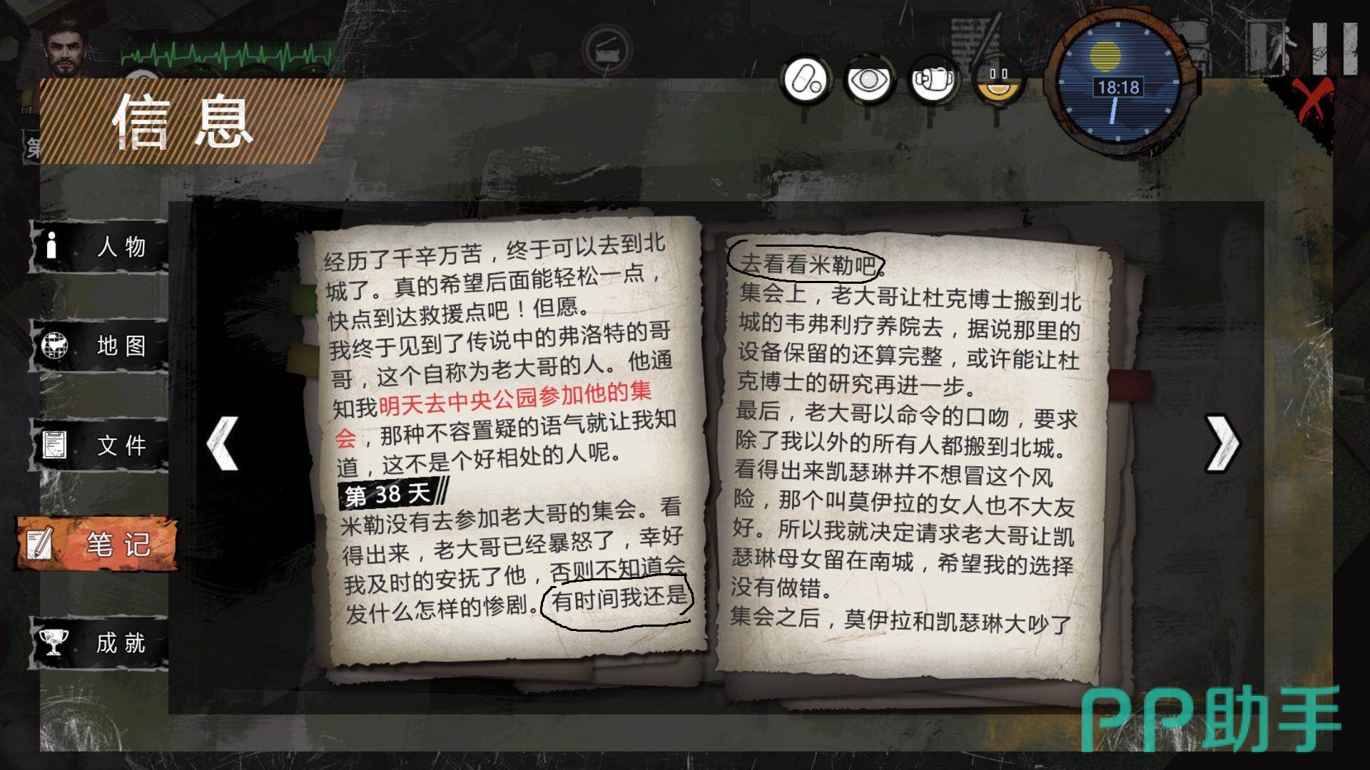 1.通过观察任务日志来解锁章节是最快的,红色字体一定是重要信息,黑色字体隐藏重要剧情信息,要注意查看。