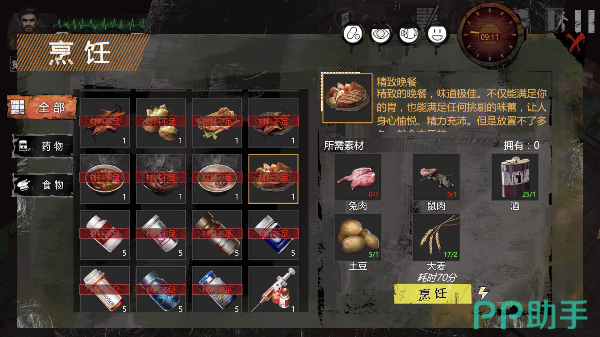第六个方法:制作比较高级的菜肴,高级菜肴不仅吃了能让肚子满足还能提升人物的心情,但是所需的材料会比较多,但是也不难收集。