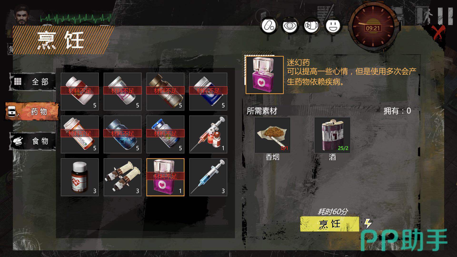 第七个方法:使用和烟草有关的物品,比如香烟,但是香烟分好坏,最低级的香烟可能导致肺部疾病,除了香烟之外还有迷幻药,这类方法就比较得不偿失,玩家可以自行斟酌。