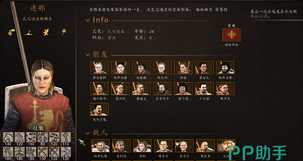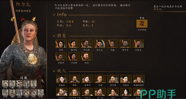 在本作中你的妻子不光能和玩家生儿育女,还可以作为战力常伴左右。你可以选择一个战斗技能熟练度都比较高的女性作为伴侣,这里比较推荐阿尔瓦,在正式版的模型更新之后,颜值也非常耐打,并且马术和剑术都达到了210点熟练度,其余方面的战斗掌握也很高,另外身份也是贵族,无论怎么看都是非常优秀的女性。