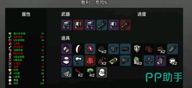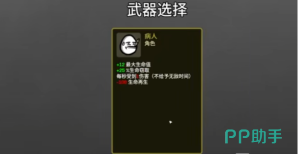 以上就是土豆兄弟病人攻略了,这个角色在后期的伤害不高,前期一定要稳定发育,主堆生存,用血量将怪物慢慢耗死即可。总之病人的操作难度不大,虽然伤害不高,但是能够凭借自己优异的回血速度,生存到最后。
