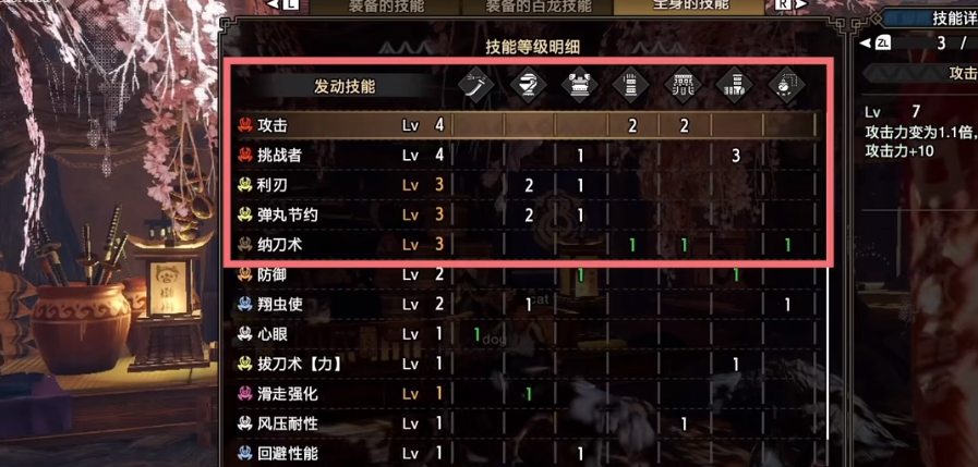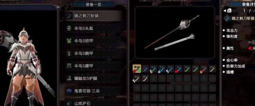 之后我们可以用这把蓝色武器,刷一下上位的“伞鸟”,给自己打一套伞鸟套装,我们的防御力也会有所增益,帮助我们更好的进行战斗。并且我们会激活一个技能“纳刀3”,在战斗方面有了明显的提升。