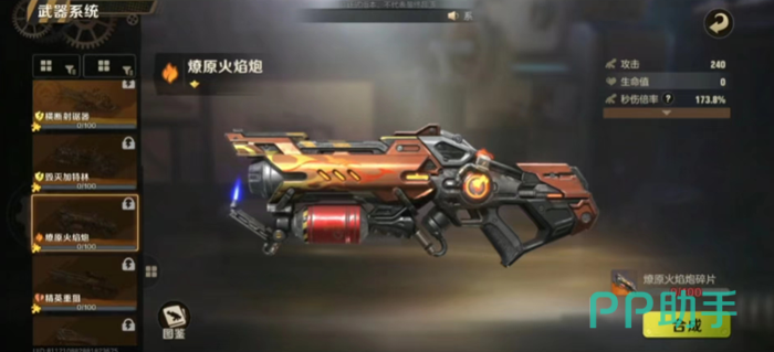 4、燎原火焰炮:这款武器可以说是一款火枪,主要采用了喷火的方式进行攻击,可以说是杀伤范围极大、杀伤效果持续,虽然无法给敌人造成一击致命的效果,但火焰有扩散效果且持续伤寒,在游戏中想要对数量较多的敌人进行攻击可以首先采取这款武器。