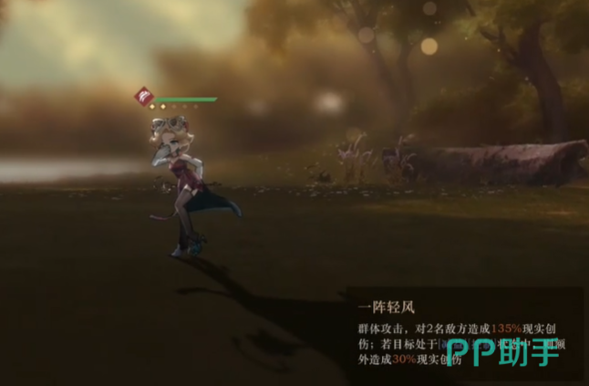 二技能是一阵清风,这个技能就是群攻了,大家使用二技能的时候,不过这里的群攻也就是两个目标,造成的现实伤害有135%的数值,不过要是目标对准的敌人身上有减益效果或者是控制影响的话,和这个135%就可以提升为165%的数值,比较适合搭配控制使用。