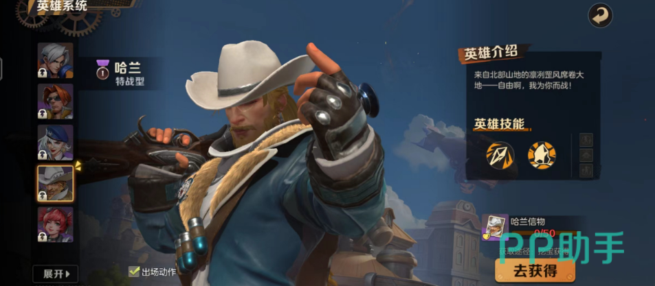 哈兰,冰属性特战型英雄,砸头冰锥,在打出伤害同时击倒敌人造成控制效果。大招霜爆冰攻场,使用冰冻猎枪创建大范围的冰雪风暴,给敌人造成伤害并且冰封一秒。这是一个很强的控制性角色,而且还可以为全队英雄提供增伤,在技能附近范围内时,近程增伤提升。还可以为全队提供冰冻增伤,每5%爆伤属性,提升1%冰伤。可以说是队伍万金油了。