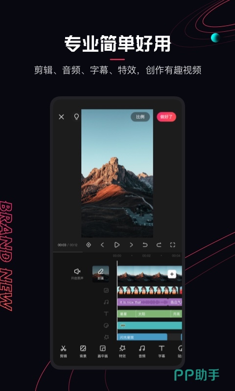 视频剪辑专业版这款软件是手机端比较专业的视频剪辑工具,借助这一工具用户们能够进行爆破视频模板套用以及自定义视频内容编辑修改,帮助我们更加快速的掌握爆火视频精髓。同时,用户们能够在这款软件上进行简单的尺寸修改编辑以及多余视频片段的分割,从而实现视频高效剪辑修改任务的完成。