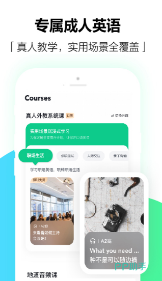 对于成年人来说想要学习英语的话,也可以下载这个软件,它可以通过真人进行教学,让用户能够在各个场景当中,都可以拥有着流利的英语。同时更能够提供标准式的朗读纠音,在评测专业能力的时候,也会根据每个人的情况进行个性化的定制,更能够定制专属的学习计划。