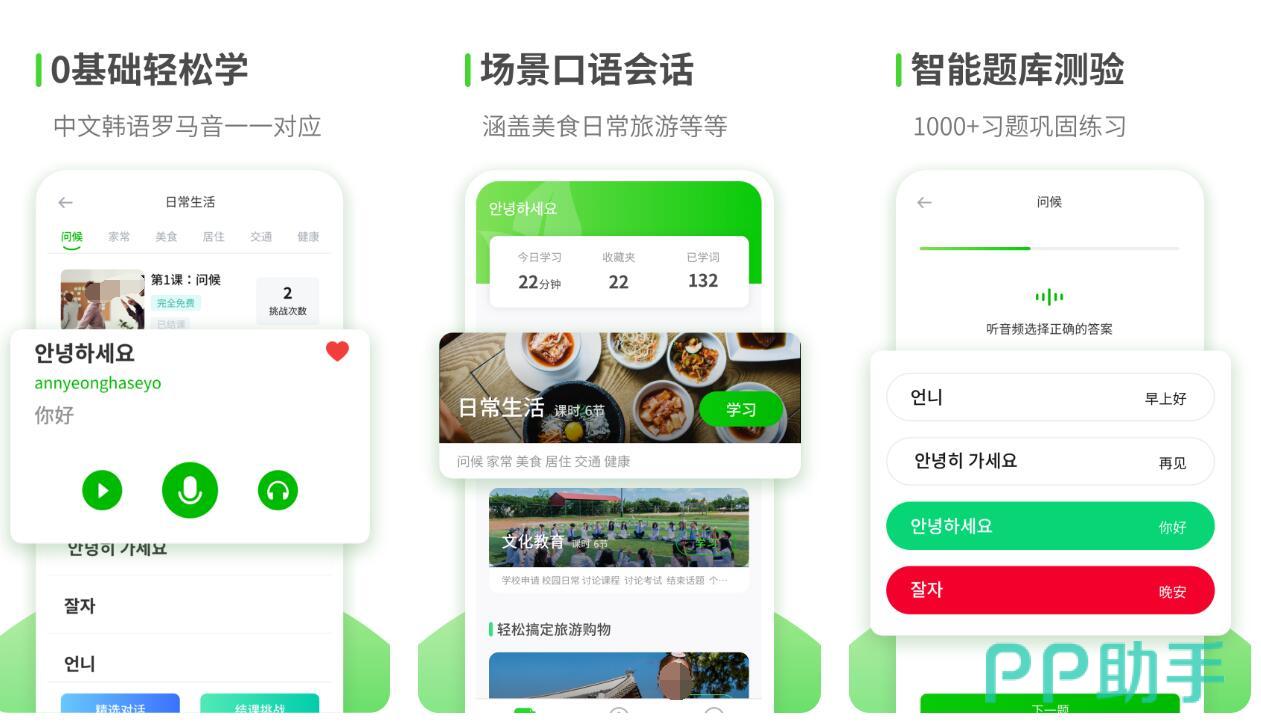 喜欢韩语的用户,目前也可以考虑使用本款app来快速提升交流能力,各种场景的针对性对话训练会在app当中开放,大家也可以通过题库来进行刷题,以此获取韩语相关的基础知识内容。