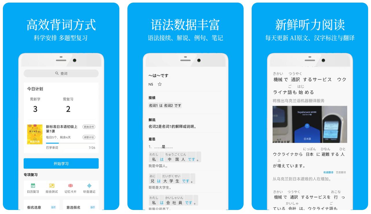 作为一款以日语学习为主的软件,其中独特的背词教学模式,将帮助各位更快记住相关的单词,同时在语法数据当中,系统也会为大家详细的讲解不同词汇的含义和使用方式。听力功能当中,AI会为大家朗诵各种内容,用户可以直接开始进行默写训练。