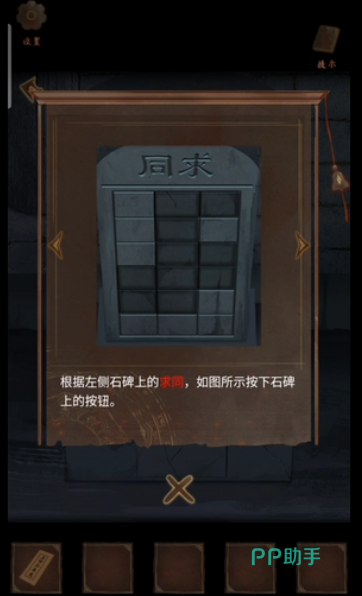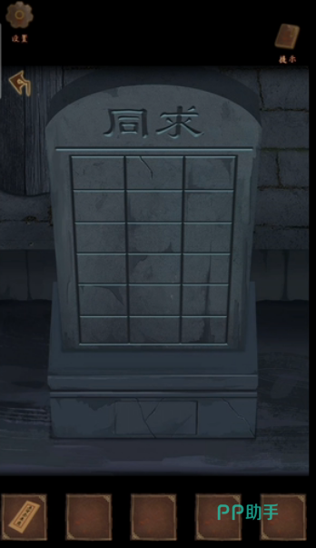 在院子里有一口井,在这一口井的旁边就可以看到求同石碑,在石碑前可以获得道具,就是绳圈,另外也会给玩家提供很多线索,我们可以根据这些线索,点击相对应的格子,这样就可以获得木块。