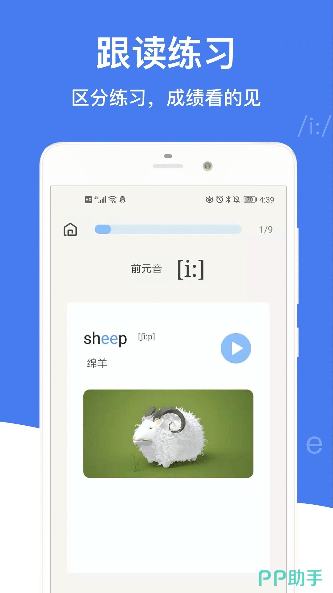 如我们练习英语发音的话,除了多听多读以外,学习音标也是非常重要的一环。因为像一些单词可以直接通过看音标清晰准确朗读出来。这款软件里面提供了非常准确的国际音标方法,帮助我们从零基础学习,而且每个音标音节都有对应的读音和助记方法,通过这一系统性的学习,让我们能够准确发音。