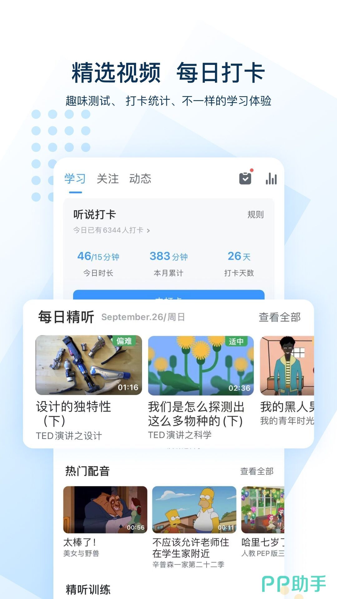 这是一款适合各个年龄段学习英语的软件,能够帮助我们锻炼,提升英语各种能力,包括常用的,听说读写能力。软件里面以影视作品的方式,先帮助我们磨耳朵,锻炼听力,然后再进行配音训练,使整个英语能力进行提升。当然里面还有很多权威的英语老师讲授一些优质课程,除了简单的入门学习以外,还支持英语六级,考研英语等学习服务。