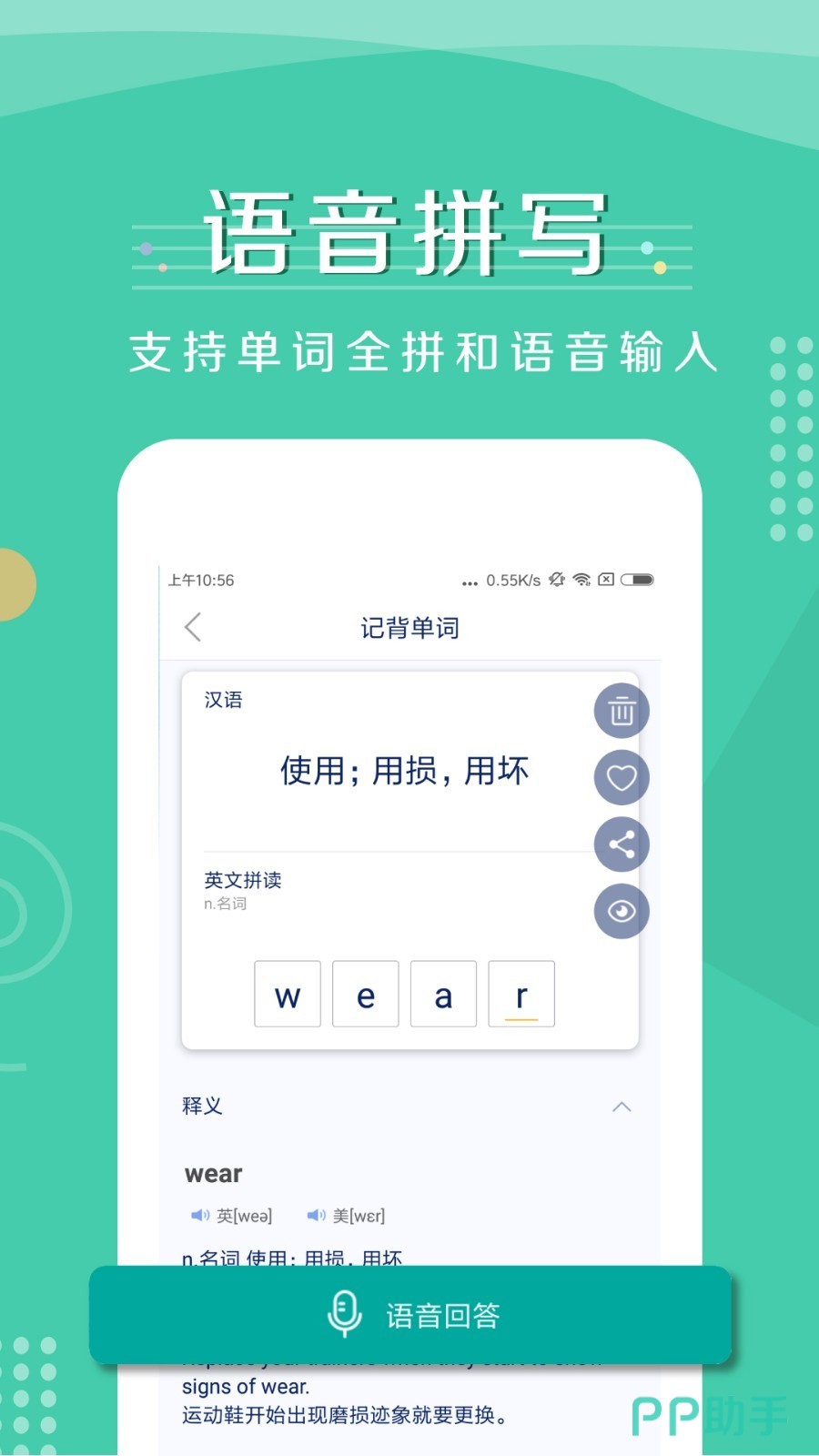 如果其他的背单词法你觉得枯燥难记忆的话,这款app提供的“魔性”循环记忆法帮你洗脑性记忆单词,应用还为你的听说读写的记忆提供服务,提供特色的语音回复功能帮你输入拼读提升语感。