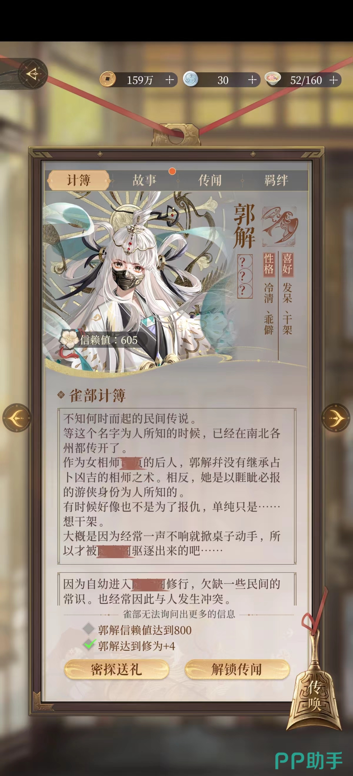 每当密探和广陵王你的好感度到达六百后,如果玩家还想提升需要获取密探对应属性的金锁,拥有一定数量的金锁后便可解锁。而玩家送给密探的道具获取方式也有很多,玩家可以选择在据点中刷取,也可以每日打满日常从礼包中随机获取。