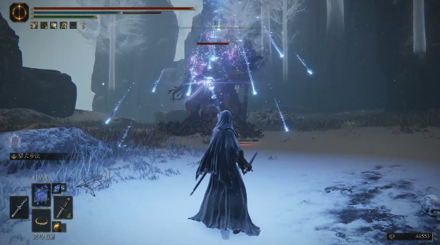而装备上你可以做菈妮支线,顺便去塔里拿一套雪魔女套装,还挺好看的建议是用女号来穿戴,另外做完会给暗月大剑,这把剑有智力加成法师也能用的近战神器,不过你会开启群星结局,但作为初见第一次打出Happy End应该没什么问题。在之后一手剑一手魔杖,开打直接招分身吃无限蓝药,上来先直接终极法术来一套血再厚也没用。