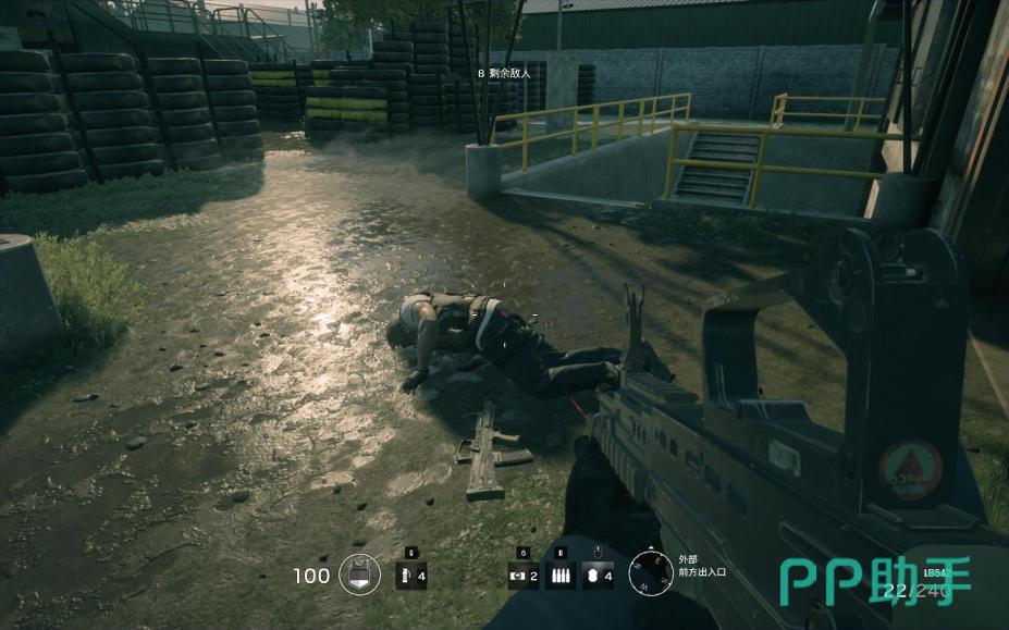 其次,每个场景的目标不同,比如撤离郊区的场景的目标有三个,在情景训练结束的时候保证角色的生命值高于50点,使用炸药爆破两个可以被暴力损坏的表面,击杀1名处于眩晕状态的敌人。
