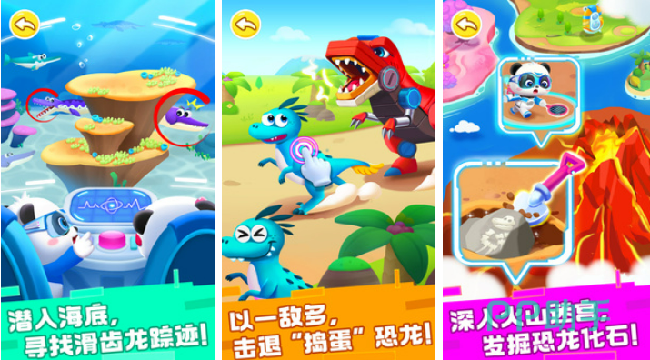 在本作中你会成为小动物形象的恐龙专家,乘坐时光机来到远古时期拯救恐龙们。本款游戏用卡通的画风描绘了真实的侏罗纪世界,小朋友可以跟不同的小恐龙在侏罗纪的世界里玩耍,甚至可以驾驶着强大的机械恐龙与邪恶的恐龙战斗。本作有着许多真实有趣的侏罗纪场景,小朋友可以了解恐龙生活在什么样的场景中,以及恐龙们究竟是如何消失的。