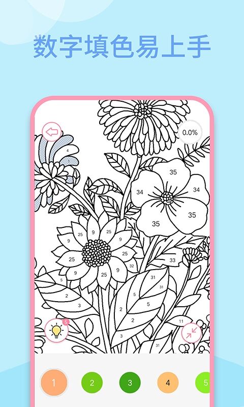 这款软件非常适合儿童进行数字填色,软件里面有很多的线稿手绘,首先孩子需要选择自己喜欢的图片形状,然后自行创作。创作的过程主要是调节颜色面板对每个数字代表的颜色进行设置,设置完成以后,就可以分区填色了。这款软件其实颜色非常简单,非常适合小孩子动脑创作,创作出来的精美图片,都可以保存到手机上。原版的线稿图包括花朵,人物,动物插画等等,可选择的也是非常多的。