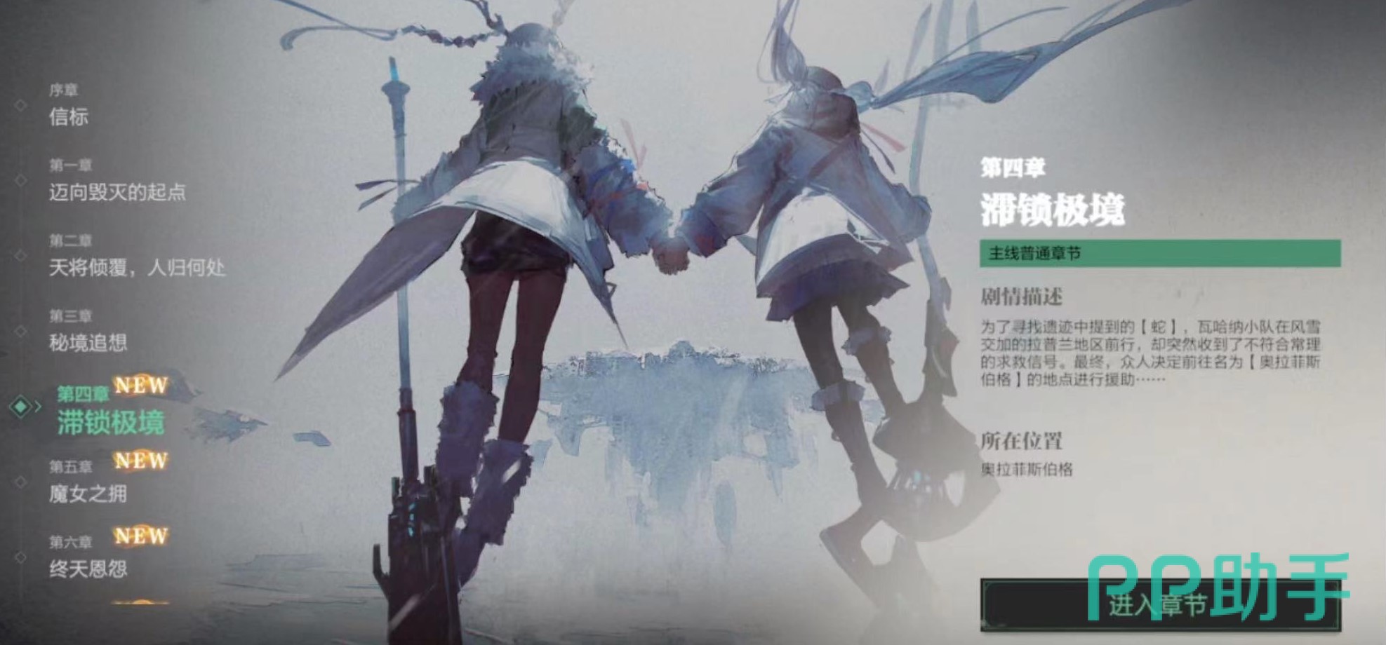众人带着石板来拉普兰寻找【蛇】,但是他们突然接到了神秘的求救信号,于是他们决定前往【奥拉菲斯伯格】进行援助。这里出现了新的人物【塔维尔】和【白】。在这里他们发现了魔女和TEO-17,他们之间似乎存在着某种联系。在这个章节中,经过大家的努力成功贯彻了TEO-17,不过在最后他还在挣扎,索性格薇德林大人出现。这一章节的末尾又埋下了下一章节的伏笔。