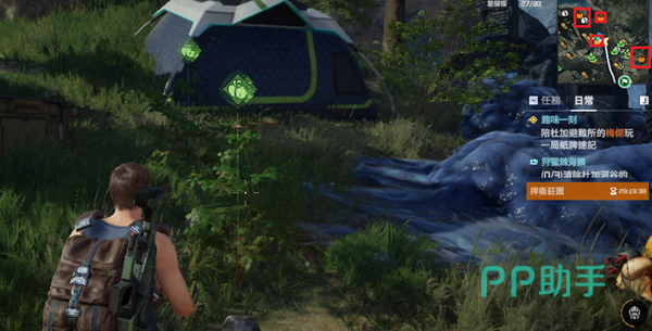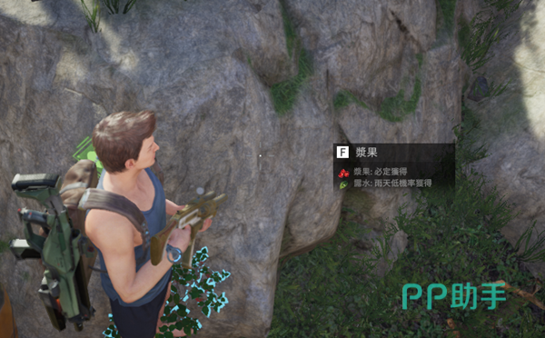 浆果在游戏的早期也是十分常见的一种自然资源,直接食用的话可以回复少量的饮水度和饱足度。大家在场景中注意一下右上角的小地图,会有一些橘黄色的像柿子一样的图标,这个地方就是浆果的采集地点了。与浆果丛进行互动可以固定获取到一个浆果,雨天还能够有概率获取露水等材料。