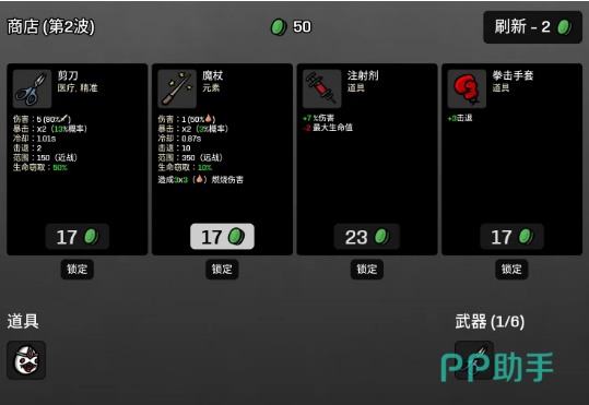 首先来看一下这个角色的武器,相信大家也很清楚,我们在玩这个角色的时候,会发现玩法比较多,选择武器的时候,相对来说也比较容易一些。第1种武器推荐大家使用剪刀,因为这一把武器的攻击频率比较高一些,使用的次数多了,就会触发角色技能,在很短的时间内就可以做到清场。第2个武器建议大家选择盾牌,能够提升这个角色的生存能力,对于很多懒人玩家来说,比较适合选择这个武器,会慢慢的把怪物消耗掉。