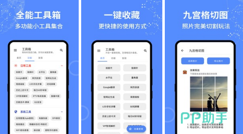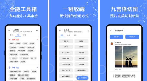 全能工具箱是多个功能小工具的集合点,里面大大小小的文本格式,编辑格式这里应有尽有。喜欢的格式可以一键收藏,下次还能再次使用,同时玩家在编辑文本时还能添加图片进行九宫格模版,按照大家喜欢的方式完美切割。