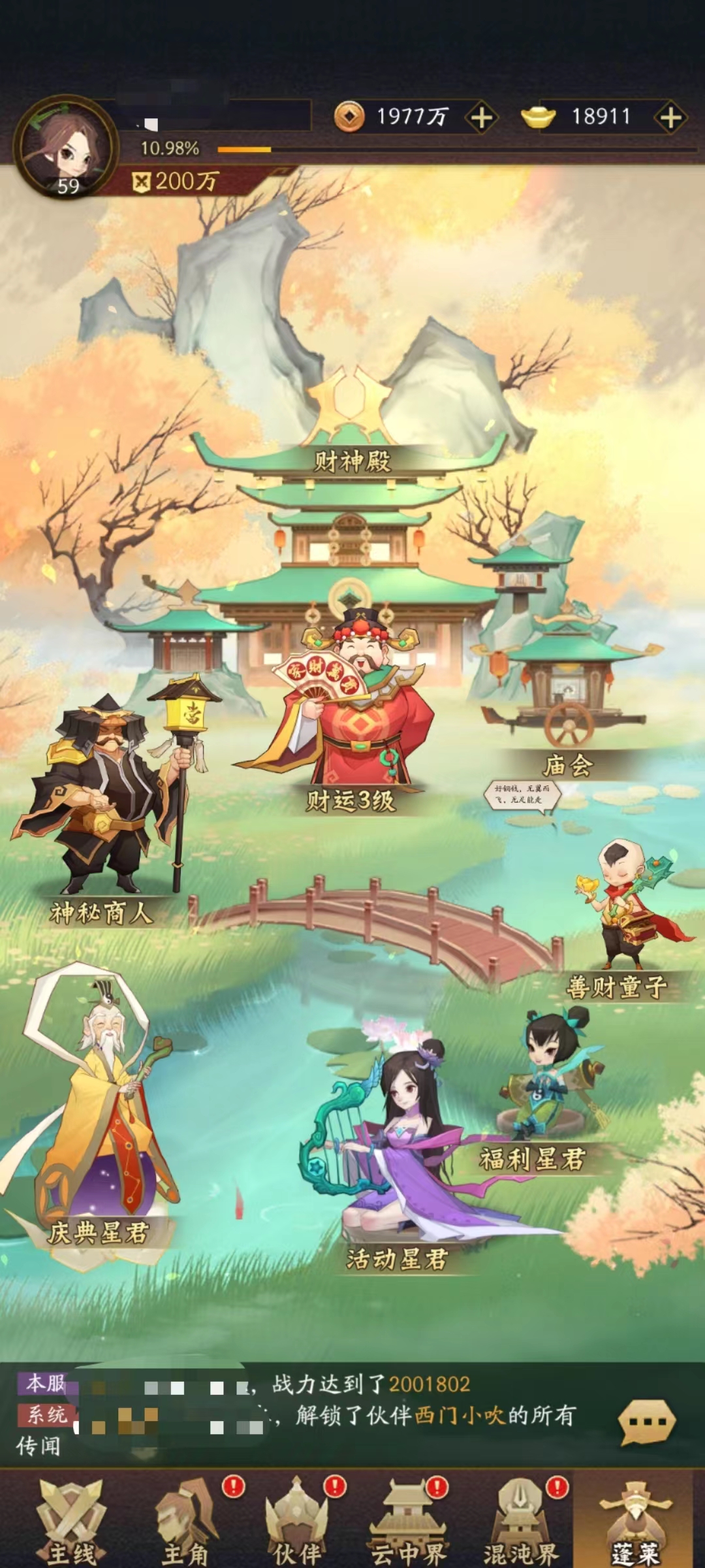 首先想要获得这个道具的话,只能通过庙会玩法获得,有些玩家会找不到这个玩法的位置,毕竟隐藏的挺深,小伙伴在蓬莱界面中,在财运等级的右侧,善财童子的上方就能够看到庙会这个玩法,经常会被其说的话给挡住,所以难以发现是正常的现象。