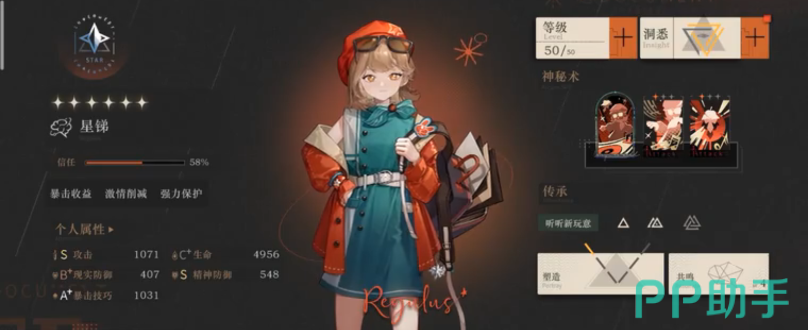 当星锑这个角色进入摇滚状态后,可以在短时间内极大提高暴击率。而且当星锑的生命值下降到百分之五十以下,就会激发一定的吸血效果,可以大大提高星锑的生存能力和续航能力,做到持续伤害。整体来看,星锑这个角色无论在攻击方面还是生存能力上都十分强势,并且星锑的可塑性较强,当星锑释放技能后,可以快速提高攻击力。